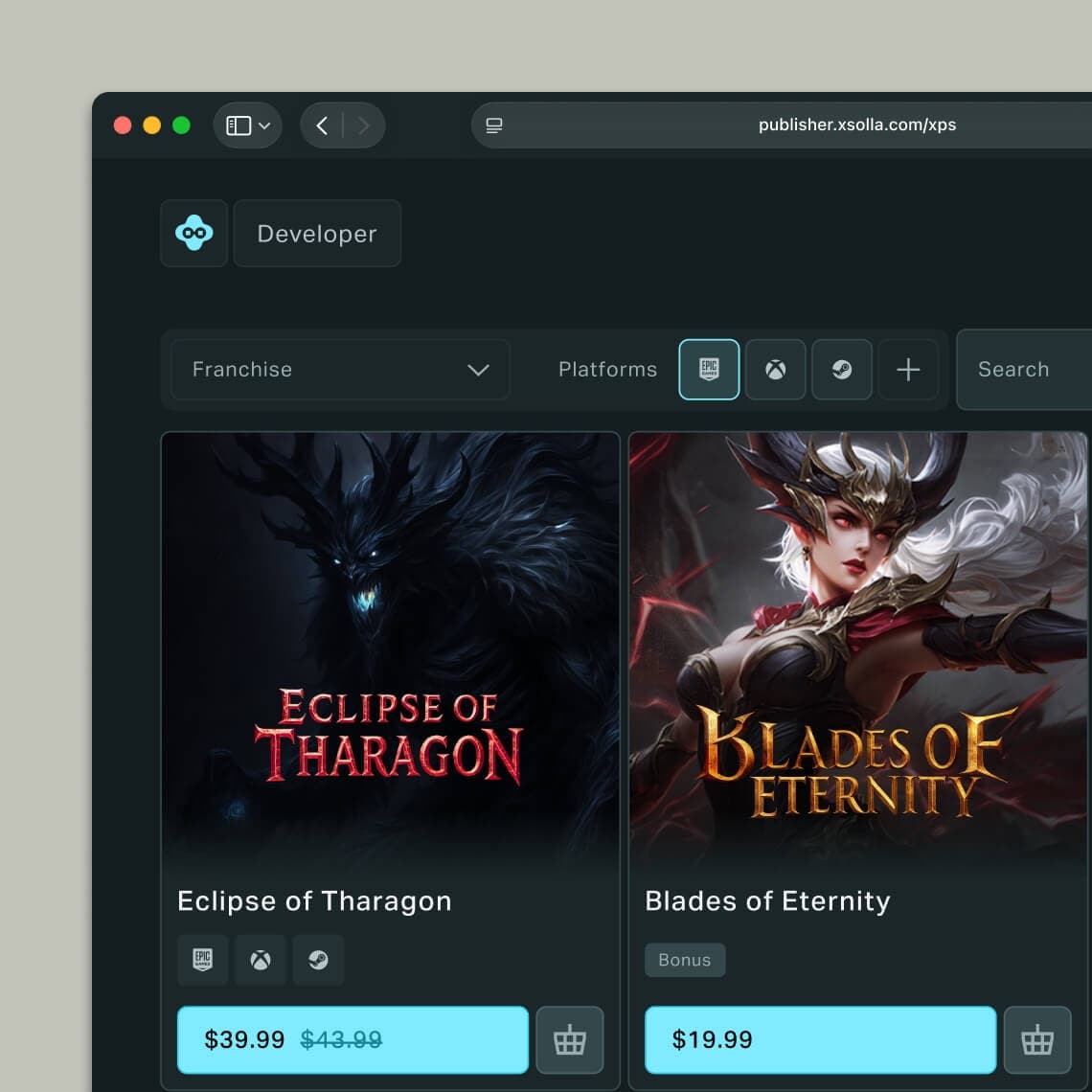 Own your in-game economy and player data. Manage SKUs, pricing, promotions, and regional configuration. Track performance with real-time analytics.